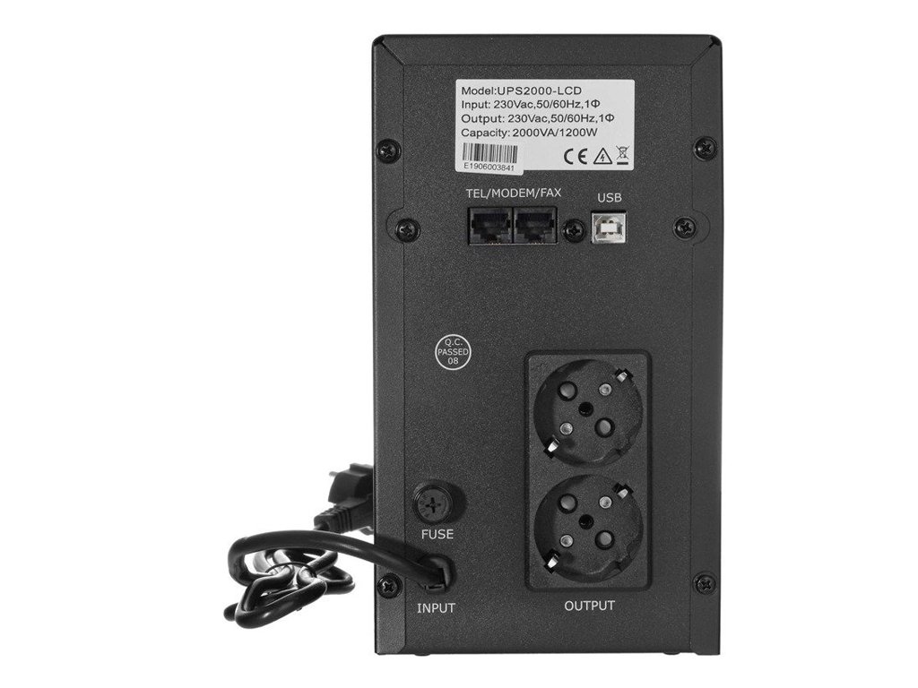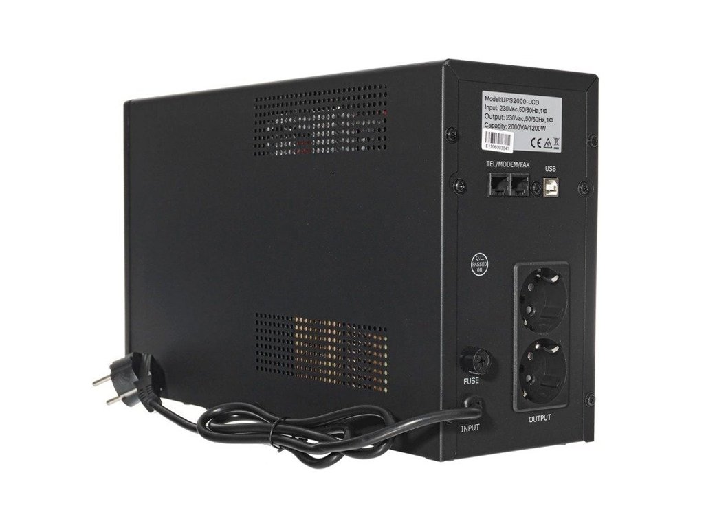 UPS2000-T-LI/LCD egy szünetmentes tápegység a EAST cégtől, amely átfogó védelmet és nagy teljesítmény-tartalékot biztosít egy kis és gazdaságos házban. A szünetmentes tápegység védi az áramkimaradások és a feszültségingadozások ellen. Ezen kívül ez az UPS védelmet nyújt a túlfeszültségek ellen RJ-45(in/out). A feszültségstabilizálóval (AVR) ellátott UPS biztosítja a csatlakoztatott eszköz tiszta és stabil táplálását. Ideális otthoni vagy kis irodai felhasználásra. UPS2000-T-LI/LCD LCD kijelzővel rendelkezik, amely alapvető információkat biztosít az eszköz állapotáról, USB porttal USB , amely lehetővé teszi a számítógéphez való csatlakozást. 2 karbantartást nem igénylő AGM akkumulátorral van felszerelve, amelyek kapacitása 9Ah, és 6 - 8 óra alatt töltődnek.