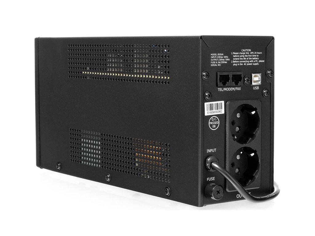 UPS850-T-LI/LED egy tartalék tápegység UPS az EAST cégtől, amely komplex védelmet és nagy teljesítmény tartalékot biztosít egy kis, gazdaságos házban. A tápegység UPS védi a tápellátás leállása és a feszültség zavarai ellen. Ezen kívül ez az UPS védelmet nyújt túláram ellen RJ-45(in/out). Feszültségstabilizálóval (AVR) felszerelve, az UPS tiszta és stabil tápellátást biztosít a csatlakoztatott eszközök számára. Ideális otthoni vagy kis irodai alkalmazásokhoz. UPS850-T-LI/LED LED panellel van felszerelve, amely alapvető információkat nyújt az eszköz állapotáról, valamint USB csatlakozó található rajta, amely lehetővé teszi a számítógéppel való kapcsolatot. Karbantartást nem igénylő AGM akkumulátorral van ellátva, kapacitása 8Ah, amely 6 - 8 óra alatt töltődik.