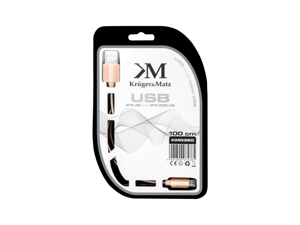 A Kruger&Matz USB-kábelek kiváló minőségű anyagainak köszönhetően nagyon tartósak. A tiszta rézből készült fővezetők biztosítják a kiváló minőségű vezetékezést, amely lehetővé teszi az adatátvitelt az USB-porttal és a micro USB-porttal felszerelt eszközök között. Ezen túlmenően ezekkel a kábelekkel könnyedén töltheti mobil eszközeit, például táblagépét vagy okostelefonját. Csak csatlakoztassa őket közvetlenül a számítógépéhez, vagy használjon USB hálózati adaptert, és használjon konnektort. A Kruger&Matz kábeleket kiváló minőségű kivitelezés és a lengyel és nemzetközi szabványoknak való megfelelés jellemzi.