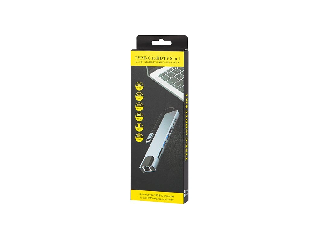 USB-C HUB RJ45 + HDMI 100W K-08 elosztó