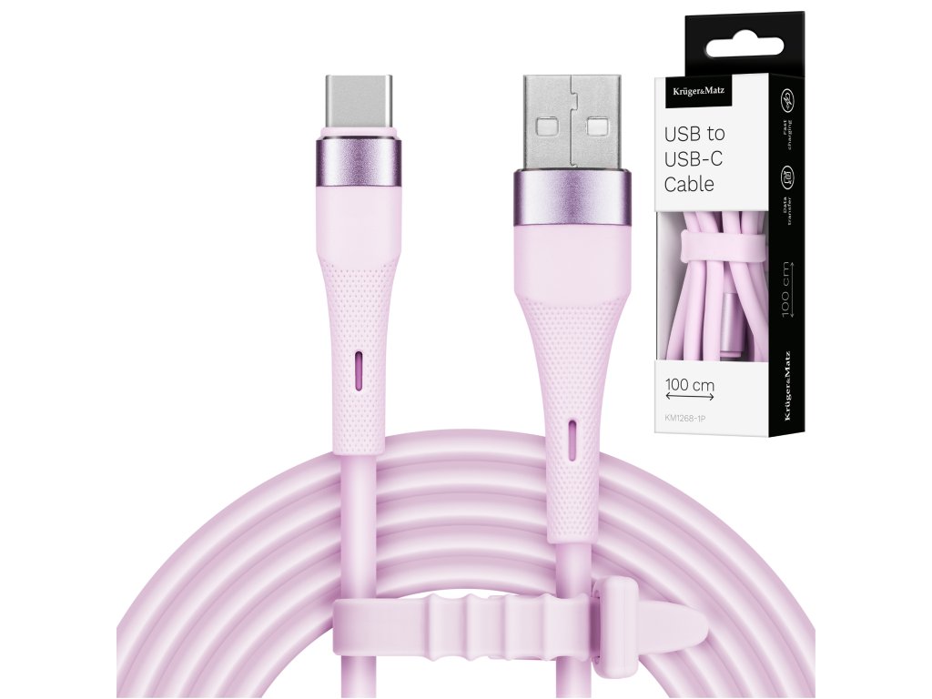 USB kábel – USB Type-C 1 m szilikon rózsaszín Kruger&Matz Basic