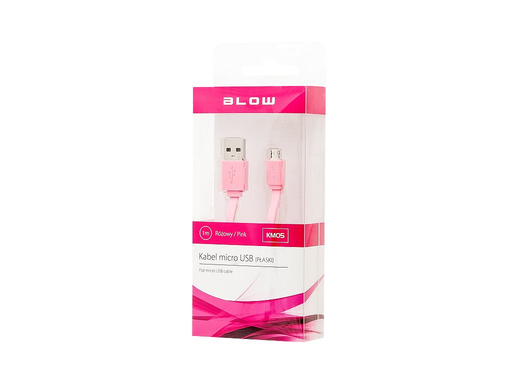 USB kábel A - micro B lapos 1m rózsaszín