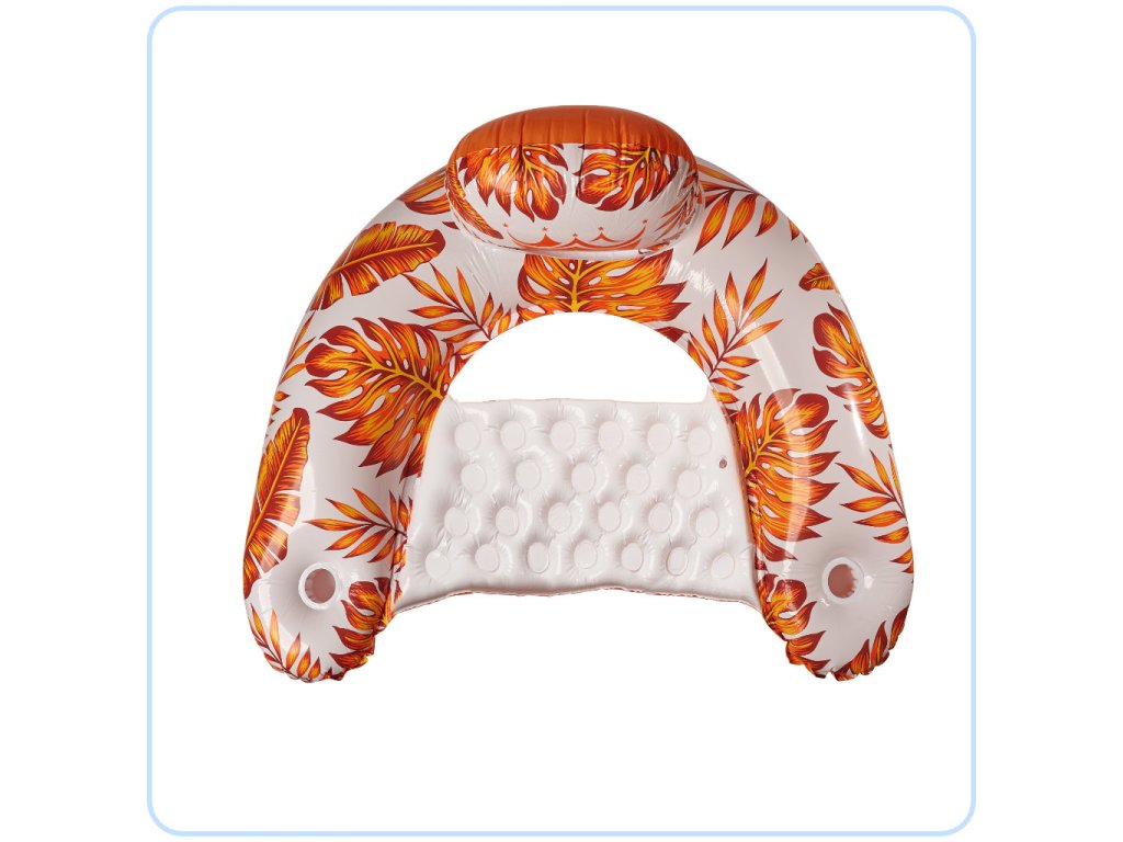 A termék által nyújtott nyilvánvaló kényelem mellett a felfújható fotel vizuálisan is csemegét nyújt - az érdekes és színes, pálmafa és monstera levél motívummal ellátott dizájn biztosan sokak figyelmét felkelti majd!