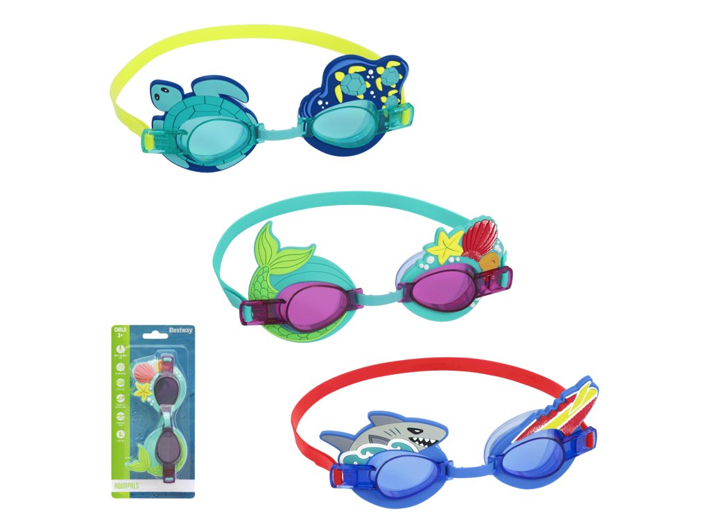 Tedd még élvezetesebbé a vízben való szórakozást a Bestway® AquaPals™ úszószemüveggel. A 3 éves kortól készült termék nemcsak védelmet nyújt, hanem különleges megjelenést is – bemutatja a kisgyerekek kedvenc tengeri élőlényeit, amelyek minden fürdőzés során elkísérik őket.