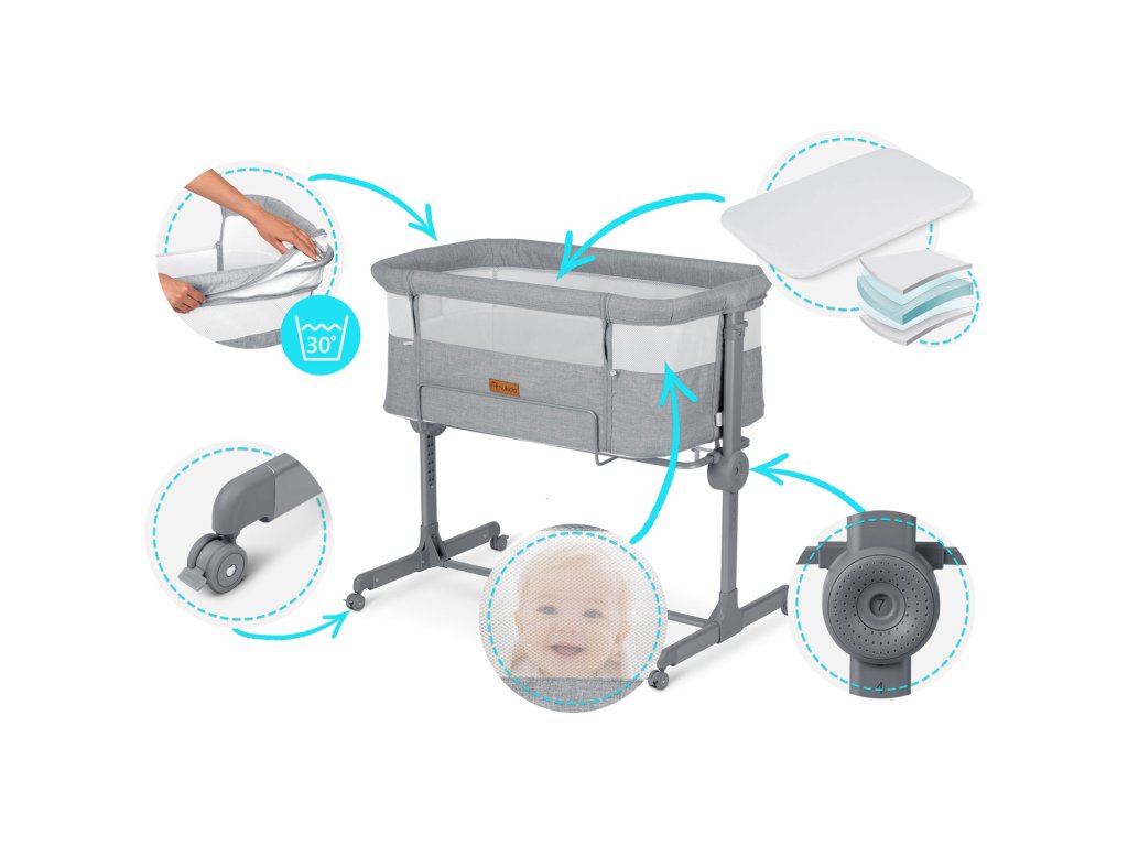 Az elismert NUKIDO márka oldalsó ágya biztonságos alvóteret biztosít gyermekének. A baba közel van a szülőkhöz , ami elősegíti a kötődést és biztonságérzetet nyújt. Könnyű éjszakai etetés.