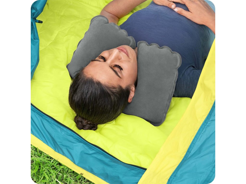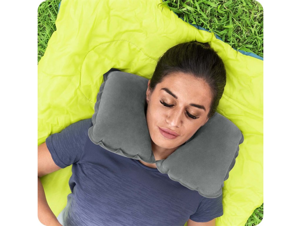Felfújható, velúr Bestway párna külső és belső használatra. Puha és kellemes velúrral borítva, maximális kényelmet biztosít. Gyorsan felfújható, és összecsukva akár egy zsebben is elfér. Főbb jellemzők: - ideális hosszú utazásokra - ergonomikus kifli alak - kényelmes flokkolt felület Műszaki adatok: - Anyag: PVC - Külső anyag: velúr - Súly: 0,11 kgKiegészítő paraméterek