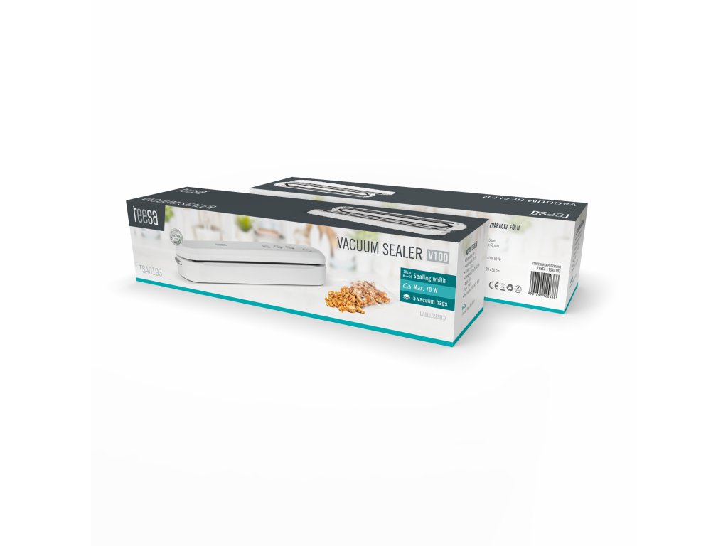 Több lehetőségA Teesa V100 vákuumcsomagoló lehetővé teszi a 30 cm szélességű zacskókba történő csomagolást. Ez nagyobb rugalmasságot és kényelmet biztosít a mindennapi használat során, különösen, ha nagyobb húsadagokat, zöldségeket vagy előre elkészített ételeket szeretnél tárolni.