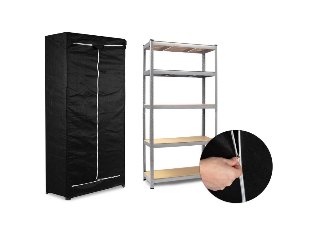 A huzat légáteresztő, könnyű és lehetővé teszi a hely rendezését azáltal, hogy eltakarja a polc tartalmát.