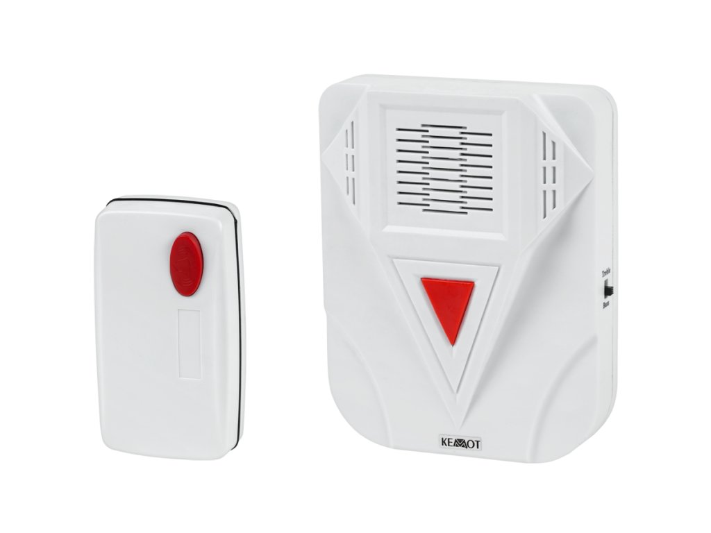 A KEMOT vezeték nélküli ajtócsengő segít akár 50 méteres távolságban is hangjelzést adni. A vízálló jeladónak és a csengő hangerejének beállítási lehetőségének köszönhetően hasznos otthon, cégeknél, középületekben, valamint a gondozásra szoruló személyek számára is.