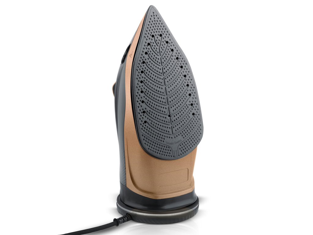 - Kerámia talp profilozott felülettel, mely megkönnyíti a sarkok vasalását.