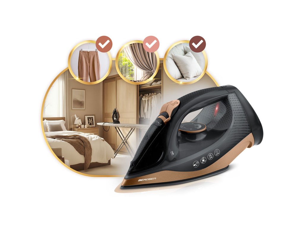 Függetlenül attól, hogy elegáns inget vasalsz munkába, vastag függönyöket, vászon nadrágot vagy ágyneműt – a Berdsen vasaló minden anyaggal megbirkózik. Égés nélkül, stressz nélkül, kompromisszumok nélkül.