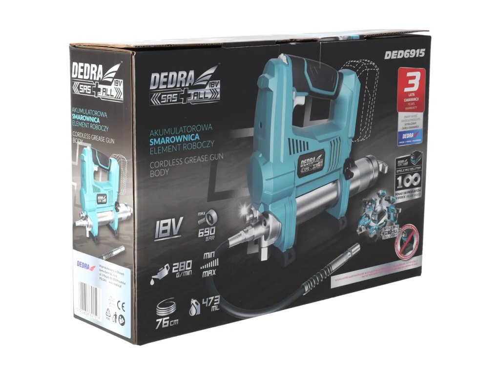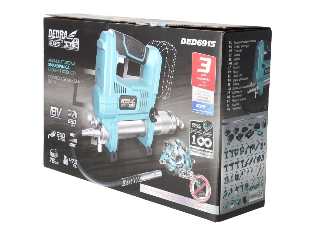 A DEDRA SAS+ALL DED6915 vezeték nélküli kenőgép egy olyan készülék, amelyet a kényelmes és gyors nyomásos kenéshez terveztek.