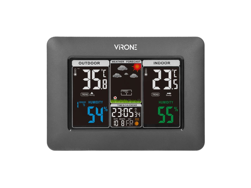 Ezzel az állomással bármikor ellenőrzés alatt tarthatja az időjárást és az éghajlati viszonyokat. Megbízható mérések segítenek javítani otthona vagy kertje kényelmét, és fontos információkat nyújtanak a mindennapi élethez. Ne várja meg, amíg a rossz időjárás meglepi – készüljön fel fejlett Vezeték nélküli meteorológiai állomásunkkal páratartalom- és hőmérsékletmérővel.