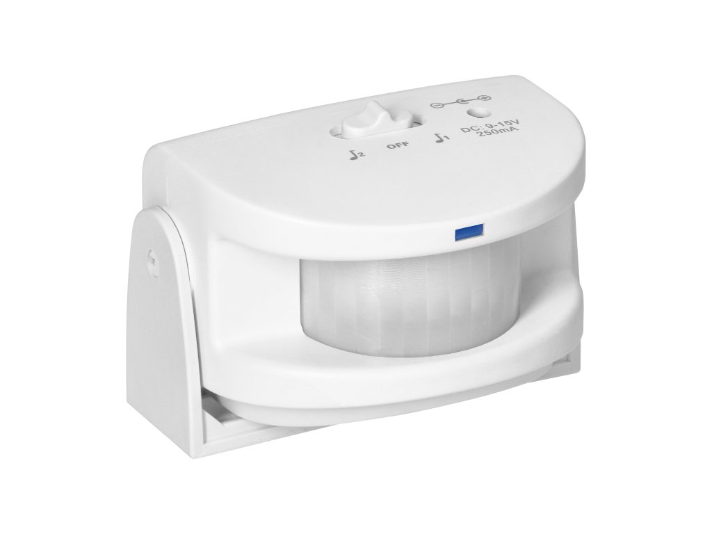 A PIR mozgásérzékelő, amely az érzékelési zónában bekövetkező hőmérséklet-változásra reagál, vezeték nélkül (rádióhullámokon keresztül) impulzust küld a vevőegységnek, és hangjelzéssel és fényjelzéssel (LED) figyelmeztet, ha a védett területen mozgást észlel.Műszaki leírás