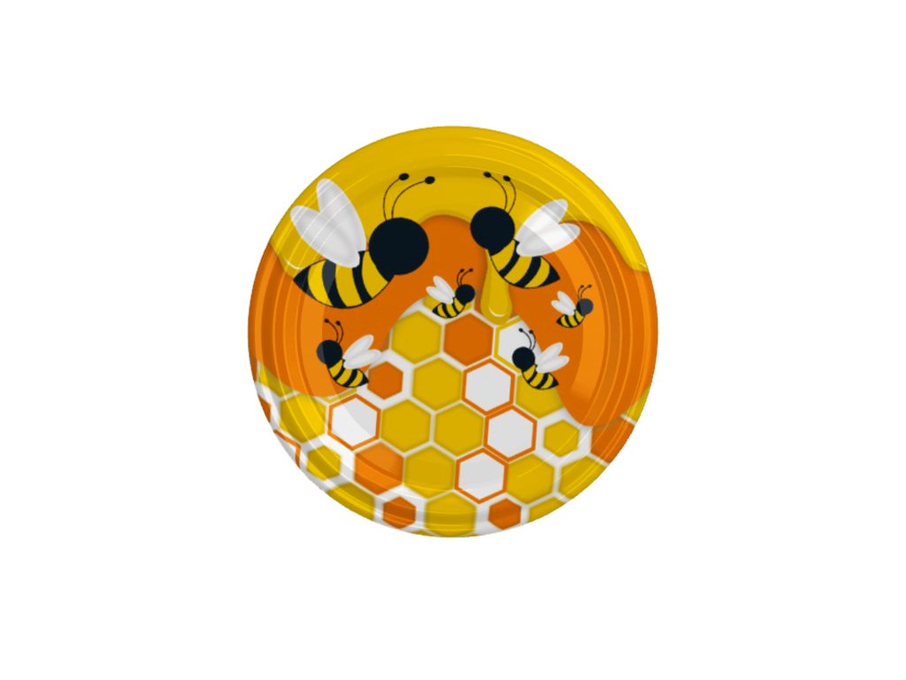 A méhecskés fedél fi66 méretben tökéletesen alkalmas a mézes vagy más lekváros üvegek lezárására. A grafika emellett minden vásárlót vásárlásra ösztönöz.Méret: fi66