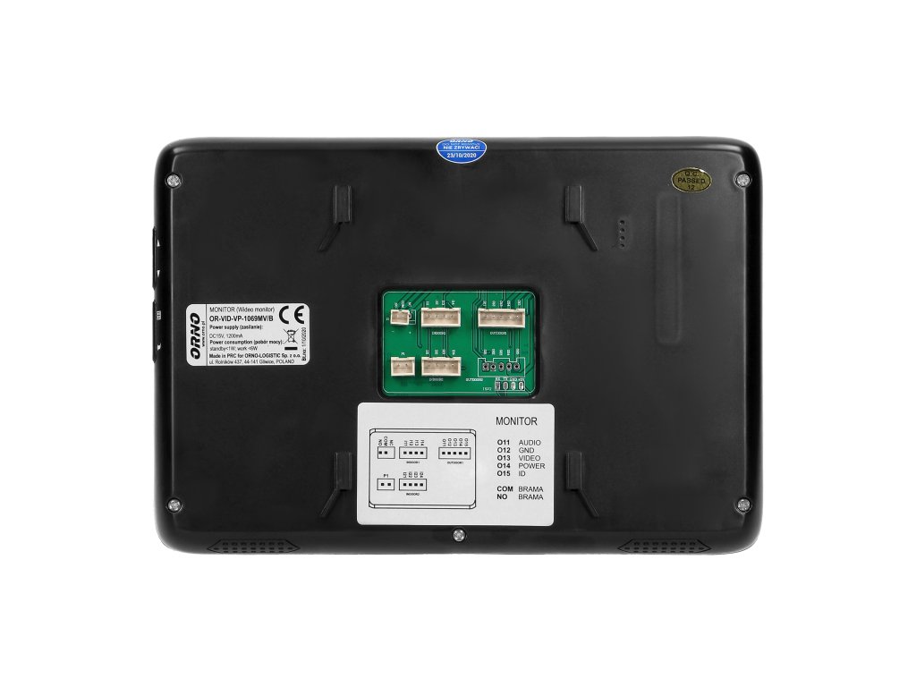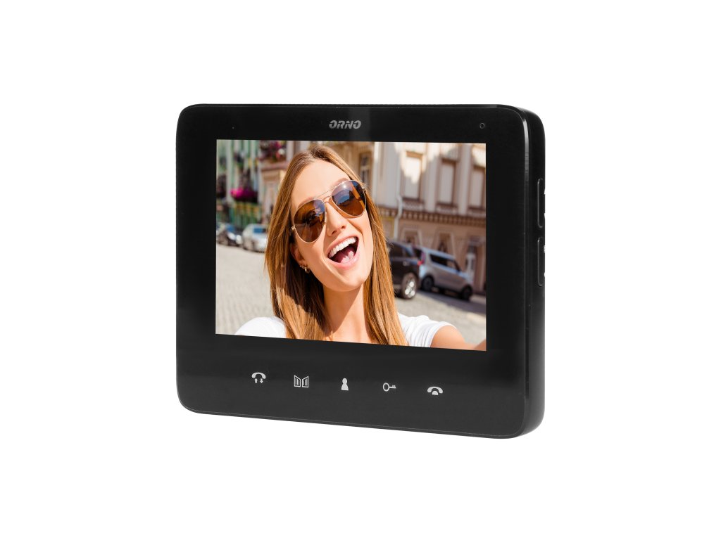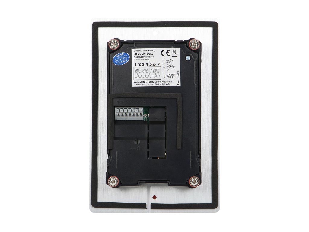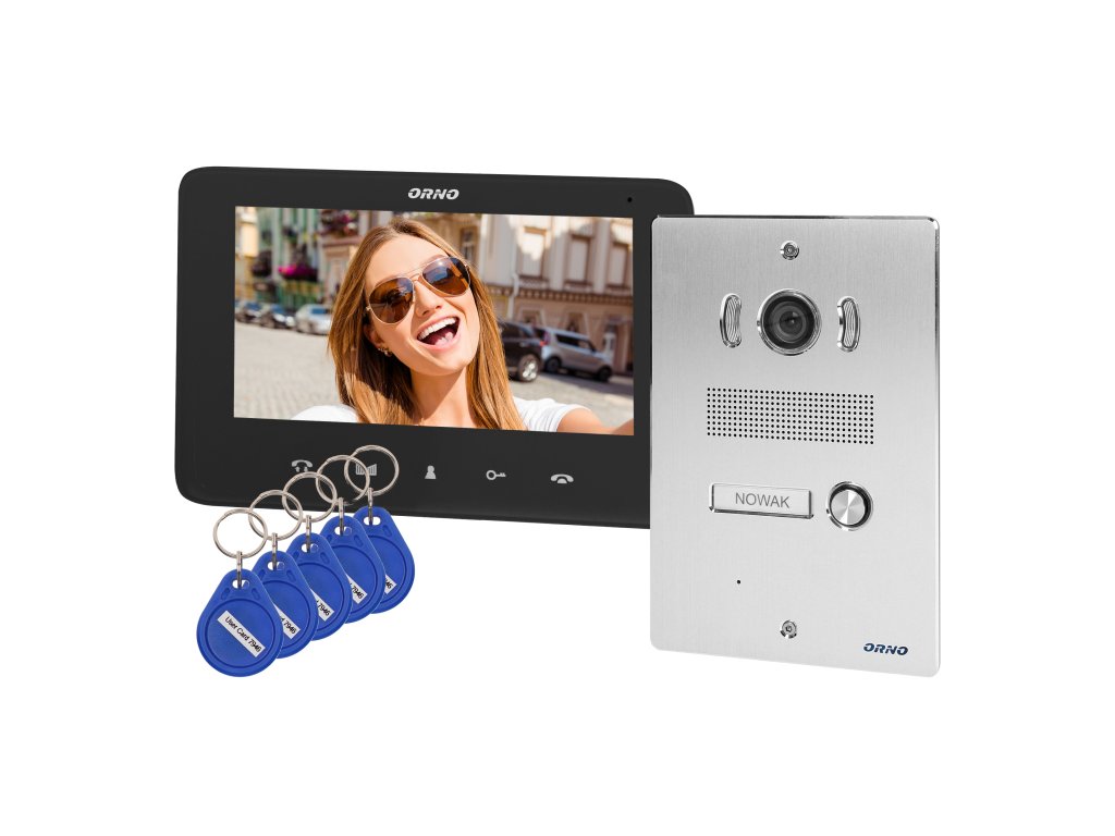 A videoajtó-készlet tartalmaz egy többszínű, ultralapos 7"-os LCD-monitort érintőképernyővel és háttérvilágítással ellátott gombokkal. A monitor paraméterei (fényerő és szín, beszéd- és csengőhangerő) állíthatóak. A készülék 16 csengőhang közül választhat. A CMOS kamerával ellátott kültéri egység süllyesztett beépítésre alkalmas. Védőtetővel, névtáblával és fényes LED-ekkel rendelkezik, amelyek kiváló éjszakai látást biztosítanak. A zárat a közelségi fob segítségével lehet feloldani. Ezenkívül a készlet támogatja a kapunyitást, és ha egy másik monitort csatlakoztat hozzá, akkor aktiválhatja a kaputelefon funkciót DC tápforrás a konnektorba csatlakoztatott tápegységről (15V DC) vagy opcionálisan a DIN sínre csatlakoztatott tápegységről (OR-VID-VP-1009ZD). 12V DC feszültségre és max. 300mA bemeneti feszültségre alkalmas a csatoló. nem igényel további tápegységet.