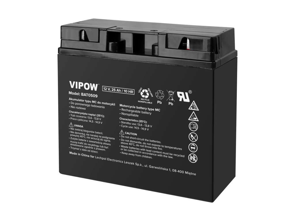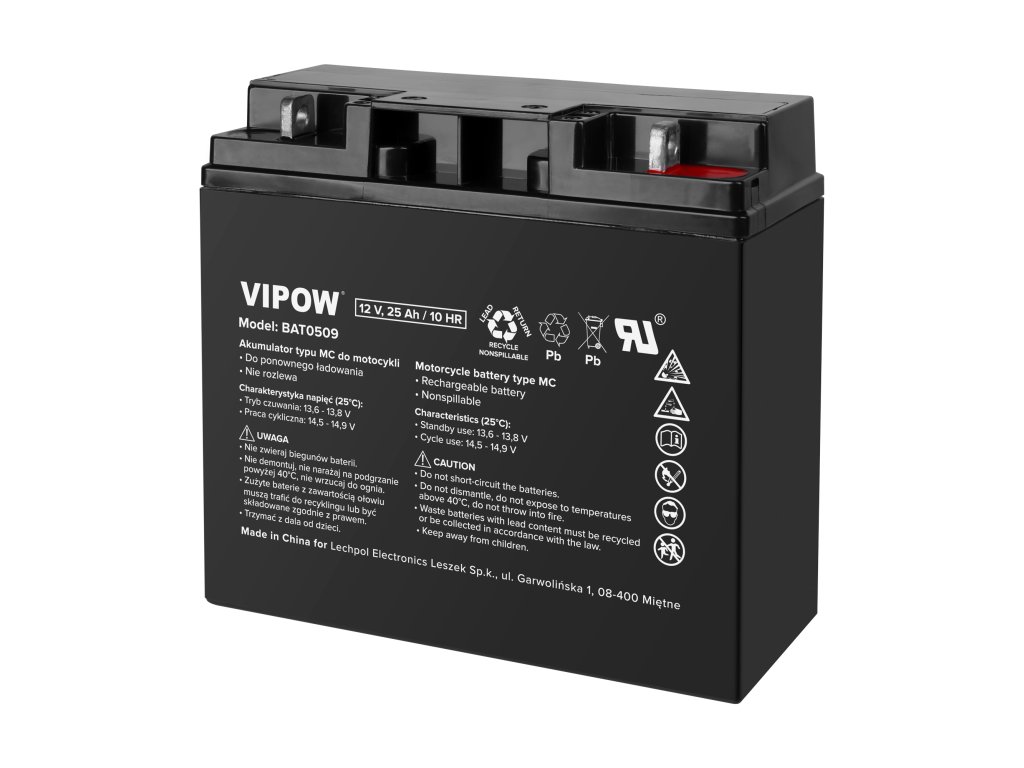 VIPOW MC típusú akkumulátor motorkerékpárokhoz 12V 25AhKiegészítő paraméterek