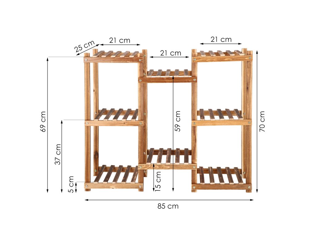 Szintek magassága: 5 cm / 15 cm / 37 cm / 59 cm / 69 cm
