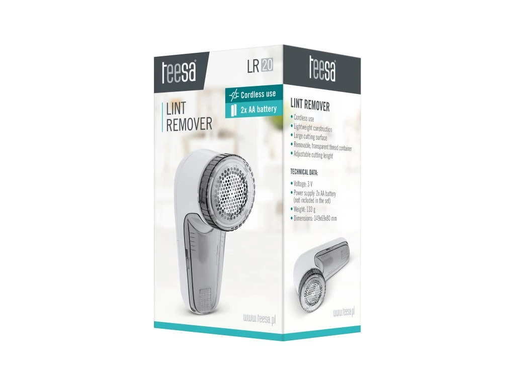 A készülék ergonomikus kialakításának és a könnyen kivehető tartályának köszönhetően a Teesa LR 20 készülékkel igazán kényelmes a szőrszálak eltávolítása a ruhákról.