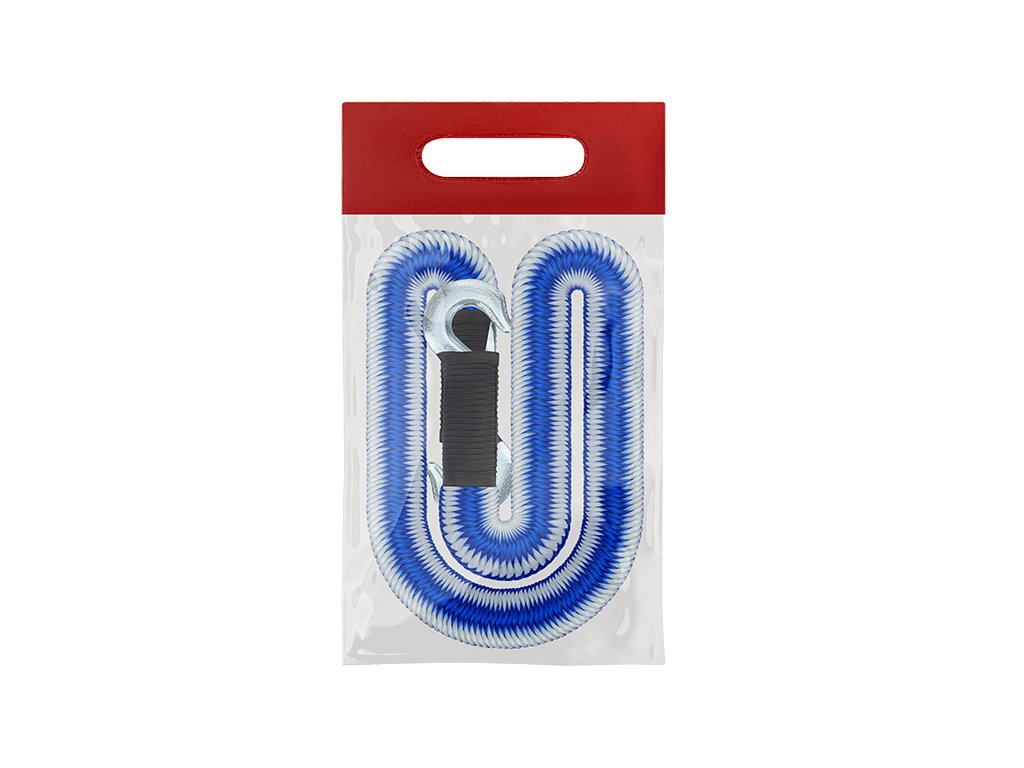Rugalmasságának köszönhetően nagyobb terhelés esetén megnyúlik, majd visszahúzódik eredeti méretére. Ezáltal a kötél nagyon tartós és rugalmas, ami jelentősen meghosszabbítja az élettartamát .Ezenkívül növeli a húzás kényelmét és biztonságát, és elnyeli az erős rántásokat .Tökéletesen viselkedik, amikor elindul a menet, ami mindig a legnagyobb probléma. A kötél két masszív fémhoroggal van ellátva.