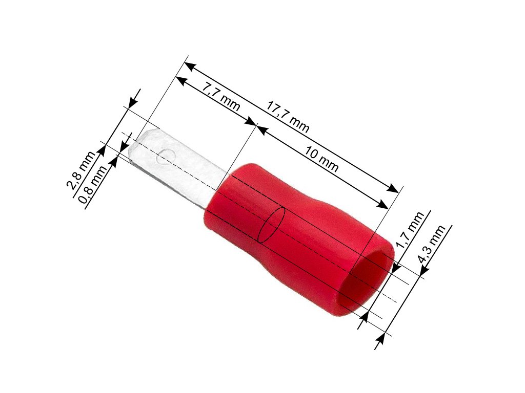 Vörös lapos férfi csatlakozó 2,8/0,8 szigetelt.
