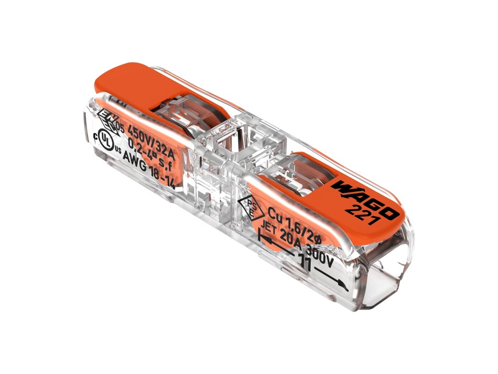 A 221-2411 katalógusszámú összekötő kapocs gördülékeny elektromos telepítést biztosít. Akár hangrendszer telepítéséről, akár elektromos tűzhely csatlakoztatásáról van szó, a 221-es sorozat kapcsai lehetővé teszik különböző típusú kábelek gyors és megbízható összekötését. Kompakt kialakításának köszönhetően hatékony megoldás, amely nagyban megkönnyíti a munkát. A 450 V névleges feszültségű szerelődoboz-kapcsok akár 32 A névleges áramhoz is tervezettek. Ezért ez a termék nagy terhelésekhez is használható. A vezetékek csatlakoztatásához 11 mm vagy annál hosszabbra kell csupaszítani őket. Ez a termék a CAGE CLAMP® technológiát alkalmazza. Az elsőpróbált univerzális csatlakozás, amelyet ma CAGE CLAMP® néven ismerünk, az elektromos csatlakozási technológia szabványa. A sorkapocs sajtolása tehát már nem szükséges. A szélesség x magasság x mélység (8,1 x 8,9 x 35,5) mm. A kábelek típusától függően a kapocs 0,2 mm? és 4 mm? keresztmetszetű vezetékekhez alkalmas.A 221-es sorozatú WAGO kapocs különböző keresztmetszetű vezetékekhez innovatív kialakítással rendelkezik. Ez a kapocs a csatlakozási elemek között egyedi védjeggyé vált. A lapos karok szinte süllyesztetté válnak a házba záráskor, az egész kapocs áramvonalas formát ölt, és bármilyen térben elhelyezhető anélkül, hogy kiálló élek miatt kellene aggódni. Minden kar praktikus formája lehetővé teszi, hogy a 221-es kapcsot teljesen szerszám nélkül lehessen kezelni a kényelmes kábeltelepítés érdekében. Az átlátszó ház erős, és lehetővé teszi a kábelek megfelelő bekötésének ellenőrzését. A billentyűstílusú karok tökéletesen ötvözik a funkcionalitást és az "Made by WAGO" csatlakozási technológia esztétikáját.