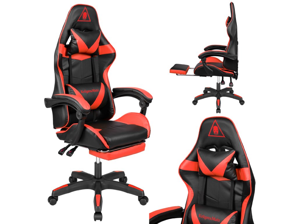 AKruger&Matz Warrior GX-150 széknek nem a modern design az egyetlen előnye. Amegfelelően profilozott háttámla és az állítható ágyéktámasz biztosítja a gerinc megfelelő pozicionálását. Felejtse el a hátfájást és élvezze a játékot!
