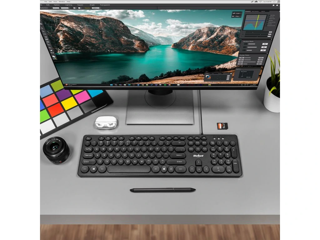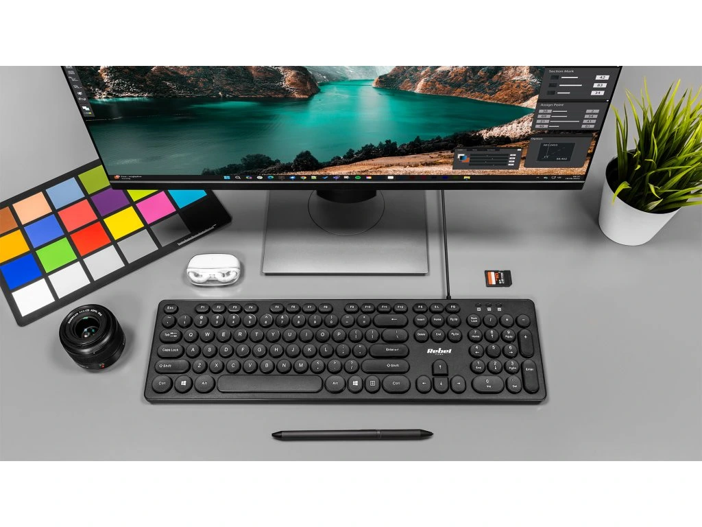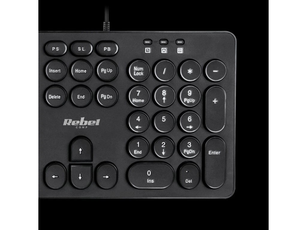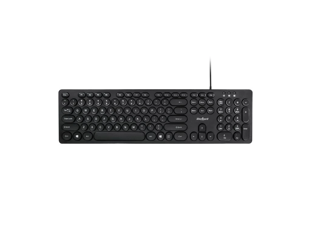 A Rebel Comp sorozat WDK 100 vezetékes billentyűzete kiváló választás otthoni, irodai felhasználók és diákok számára. Kompakt kialakítása, csendes billentyűmechanizmusa és megbízható USB csatlakozása révén kiválóan alkalmas hosszabb írásra és mindennapi használatra is.