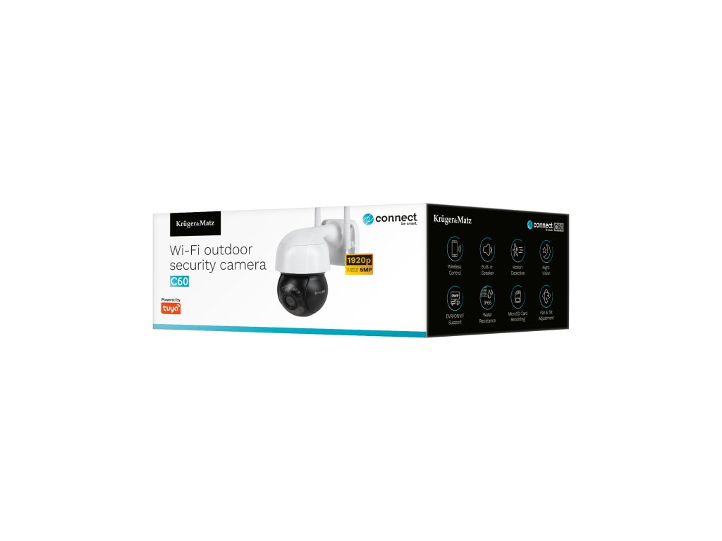 A Kruger&Matz Connect C60 vezeték nélküli kamera tökéletes kiegészítője okosotthonának berendezéseinek. A Wi-Fi kapcsolatnak köszönhetően a készülék a TuyaSmart alkalmazással vezérelhető, így bárhol is tartózkodik, bármikor ellenőrizheti, mi történik az udvarán.