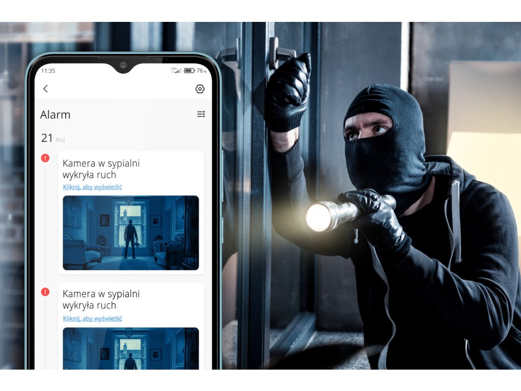 A Kruger&Matz széleskörű IP-kamerafunkciói biztosítják, hogy semmi, ami az Ön kertjében történik, ne kerülje el a figyelmét. A készülék érzékeli a mozgást, és riasztást küld az okostelefonjára. Ez lehetővé teszi, hogy gyorsan reagálhasson a fenyegetésre.