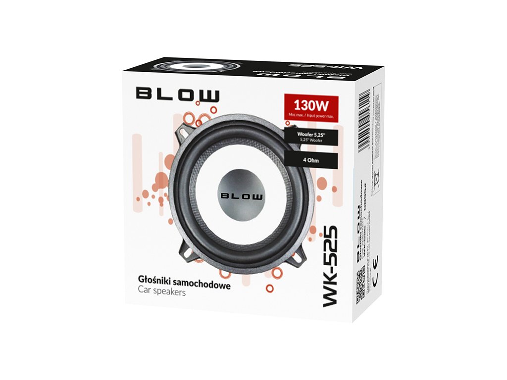 Blow 5,25'' Woofer mélysugárzó 130W maximális teljesítménnyel. Kiváló minőségű kivitelezésének és vonzó színeinek köszönhetően a hangszórónak tökéletesen illeszkednie kell bármely autó belsejébe. A kivételesen nagy átmérő és a jó alkatrészparaméterek tiszta és dinamikus hangzást, valamint figyelemre méltó zenei élményt nyújtó széles frekvenciatartományt biztosítanak.Vonzó megjelenés és masszív kivitelezés