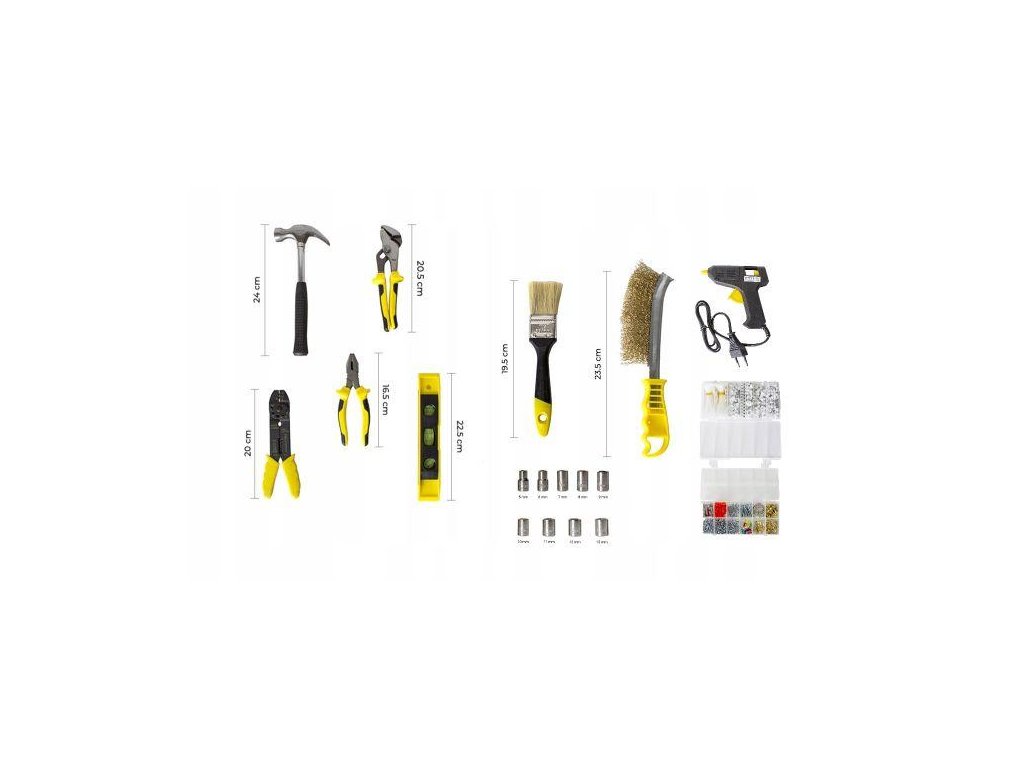 Zárható szerszámosláda kombinált kulccsal. Beépített kerekek a szerszámosláda könnyű mozgathatóságához és teleszkópos fogantyú. Tökéletesen megmunkált szerszámosláda. Az egész készlet szilárd minőségi követelményeivel készült. Alumínium szerszámosláda kerekekkel és teleszkóposan kihúzható fogantyúval a készlet szállításához (mint egy utazótáska). Négy kihúzható fiók szerszámokkal.