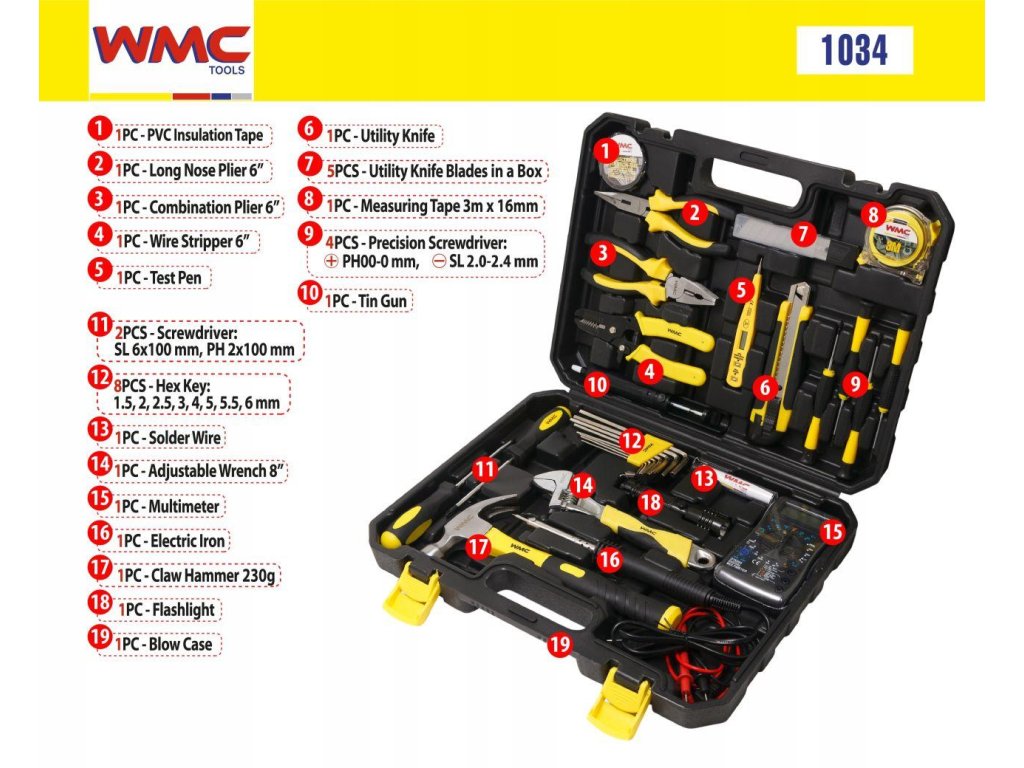 - 34 különösen kiválasztott szerszámot tartalmaz.