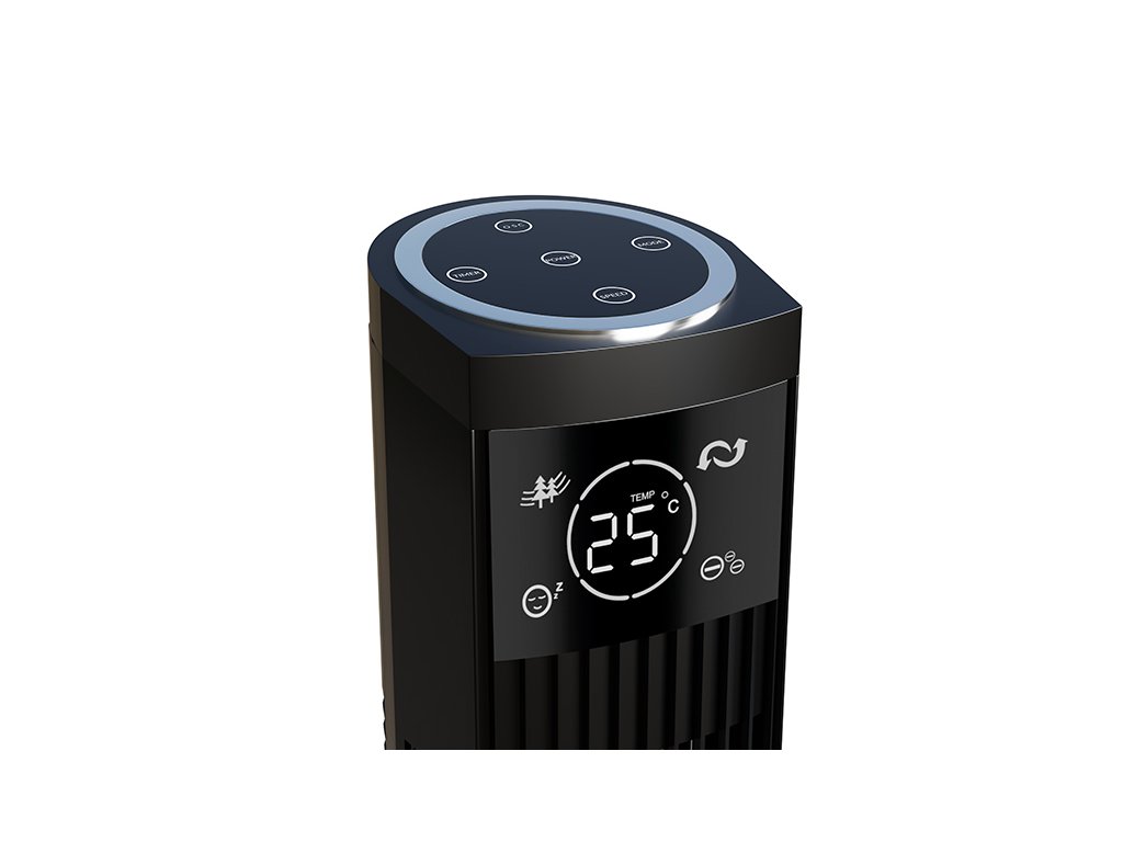 A karcsú, oszlopos kivitel bármilyen belső térbe illik. A ventilátor nemcsak hatékonyan hűti a levegőt, hanem elegáns berendezési elemként is szolgál.