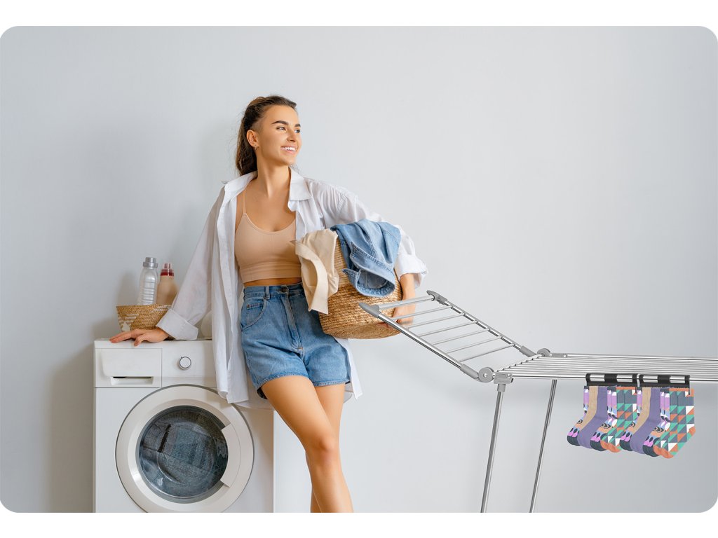 Egyszerű párosítás: A zoknik áttekinthetően felakaszthatók, ami megkönnyíti a gyors megtalálást és elrendezést mosás után.