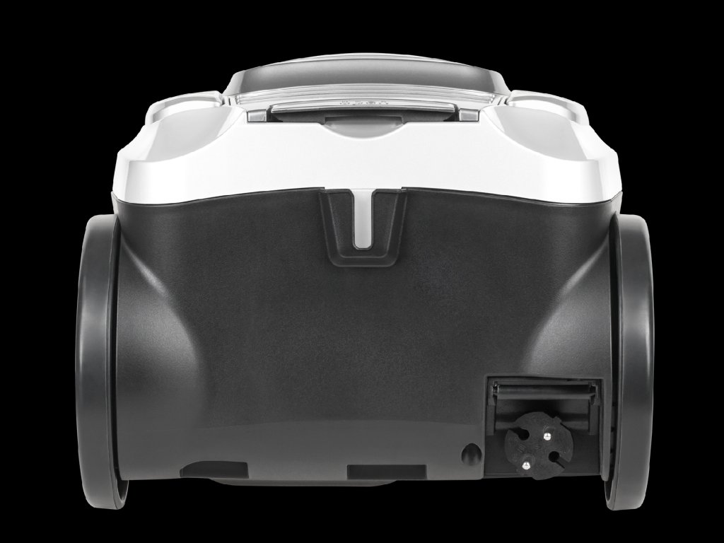 Az ECO WHITE 700 rendkívül kényelmesen használható és tárolható. Stabil kerekekkel, ergonomikus fogantyúval a könnyű hordozáshoz, automatikus zsinórfelcsévélő funkcióval, valamint függőleges és vízszintes tárolási lehetőséggel rendelkezik. A porszívó emellett tágas, 3 literes zsákkal van felszerelve, a beépített kijelző tájékoztatja Önt, ha megtelt.