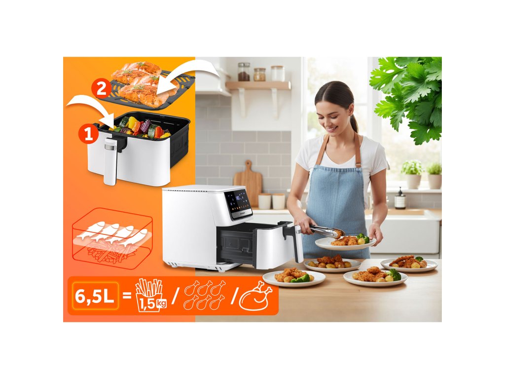 A 6,5 literes kapacitás valóban bőséges. Elég ahhoz, hogy elkészítsd: