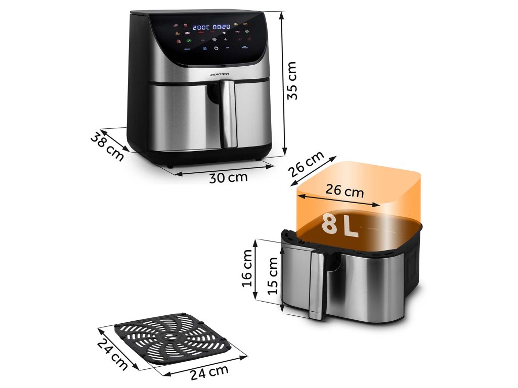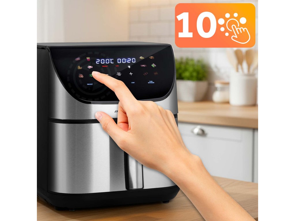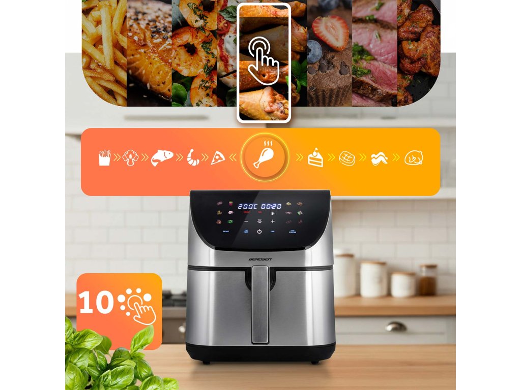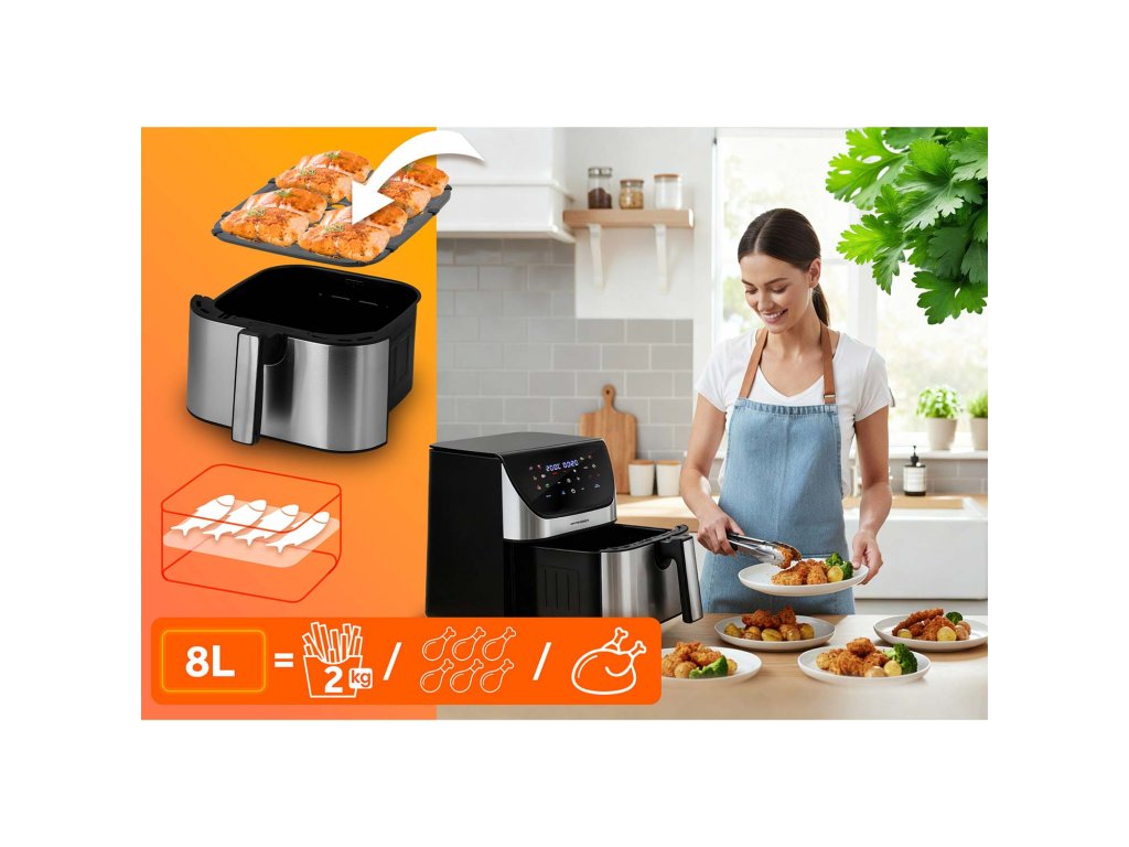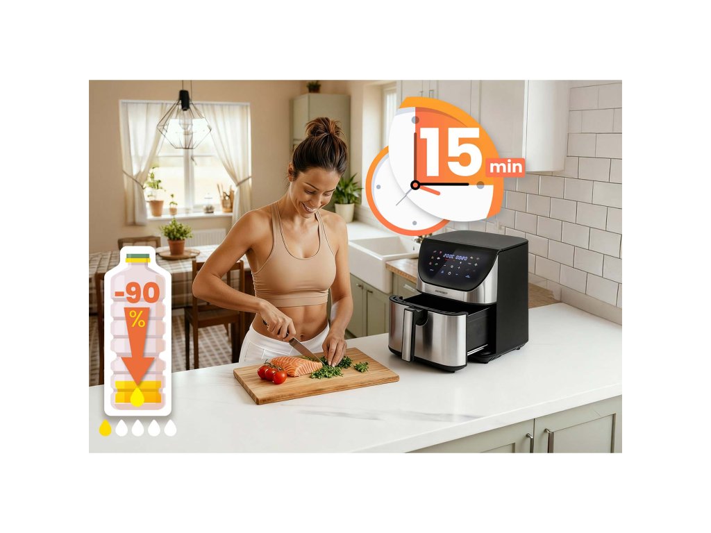 A forró levegő keringésének fejlett technológiája révén a fritőz gondoskodik a tökéletes sütési eredményekről: kívül aranyszínű, enyhén ropogós kéreg, belül pedig szaftos állag.