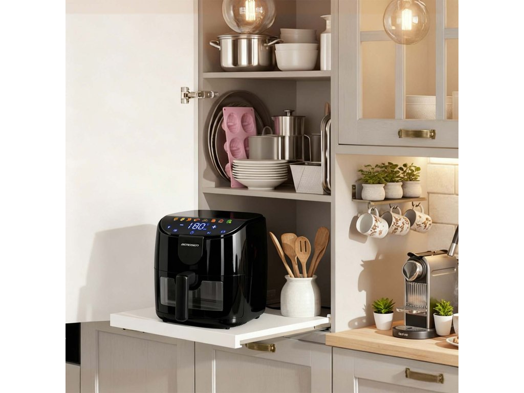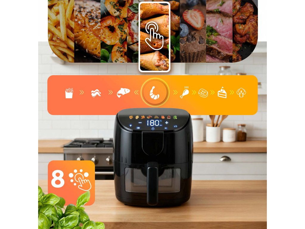 A fejlett forró légkeringetési technológia révén a sütő gondoskodik a tökéletes sütési eredményekről: aranyszínű, kissé ropogós kéreg kívül és szaftosan belül.Ez egy ízletes, könnyű alternatíva a bő olajban sütéshez képest — szag nélkül, fröcskölés nélkül és felesleges kalóriák nélkül.